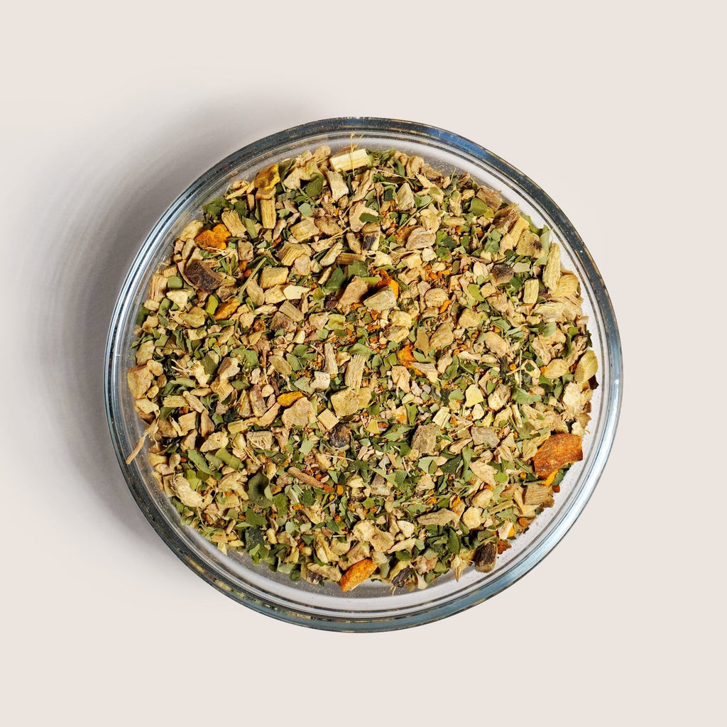 Ginger, Licorice Root, Galangal, Moringa, Turmeric. | 4.4 oz / 125 g
