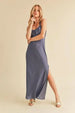 Aemi + Co Ruched Side Slit Cutout Back Maxi Cami Dress