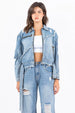 American Bazi Full Size Distressed Frayed Edge Zip Up Denim Jacket Plus Size