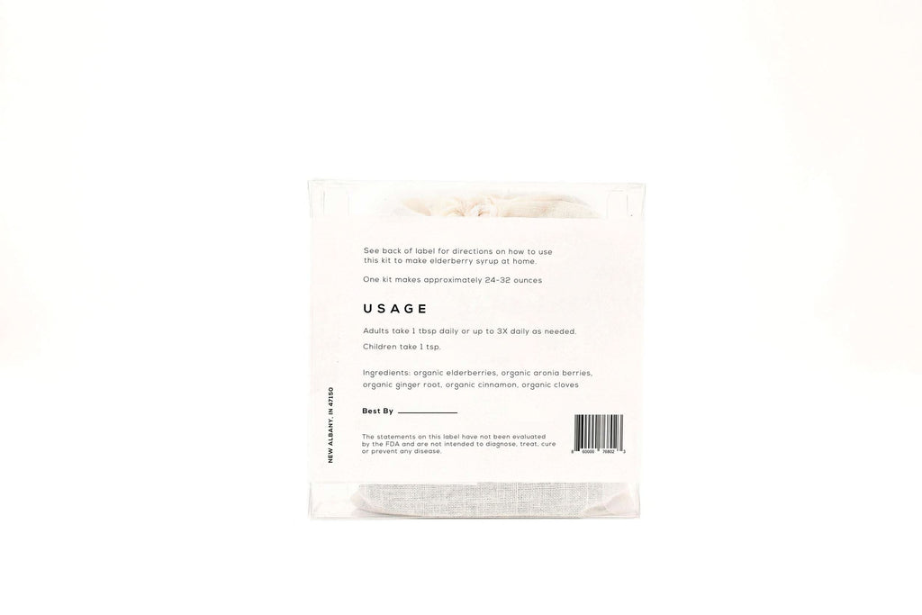 Make your very own batch of The Elderberry Co. Syrup at home! This kit comes with all of the dry ingredients and instructions to make elderberry syrup at home. (Honey NOT included).