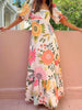 Floral Square Neck Puff Sleeve Maxi Dress with Ruffle Hem