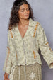 POL Raw Hem Zip Up Floral Jacket with Plaid and Crochet Patch