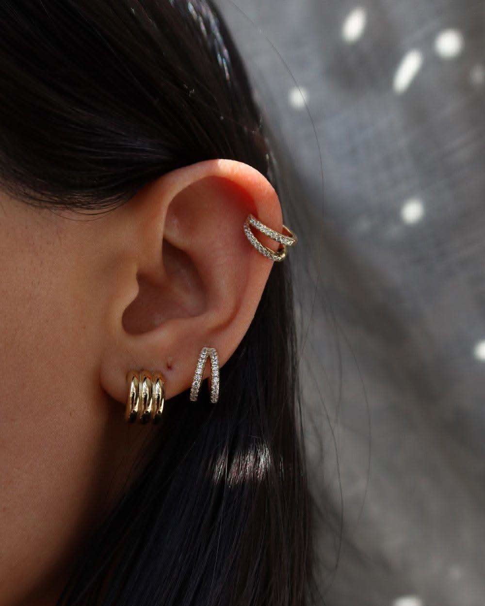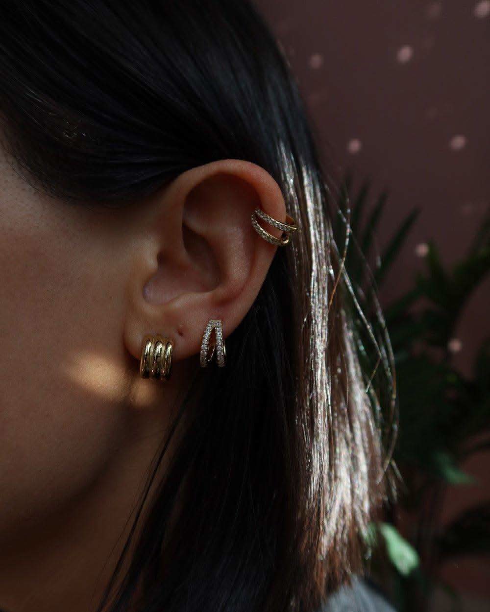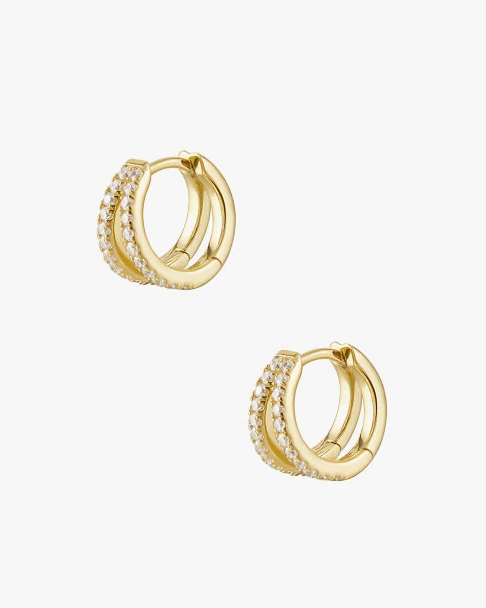These sparkly double huggie hoops are simple, yet sophisticated. Add a little something special to your ear party, or wear them solo and look like you have a second piercing.