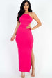 Embrace effortless style with this soft, lightweight high-stretch jersey maxi dress. Designed for a flattering bodycon fit, this dress hugs your curves and elongates your silhouette. The split thigh adds a touch of allure, while the halter neckline and sleeveless design keep it chic and breezy. Perfect for parties, nights out, or resort getaways.
