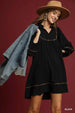 Umgee Full Size Textured Babydoll Dress with Leopard Trim Plus Size
